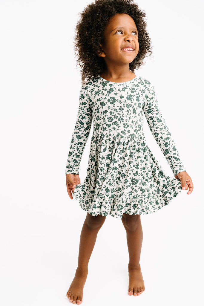Earthy Floral Long Sleeve Bodysuit Bamboo Dress