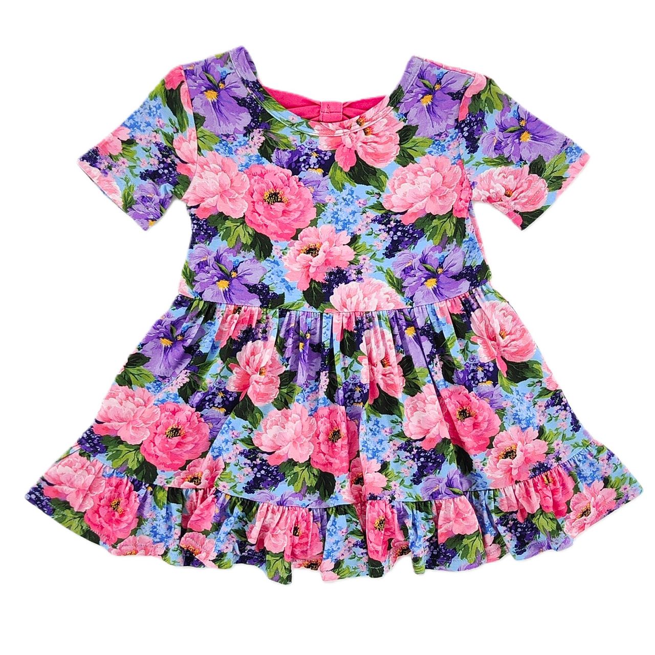 Peony Garden Short Sleeve Bamboo Dress With Snaps - 0-3M is backordered and will ship as soon as it is back in stock.