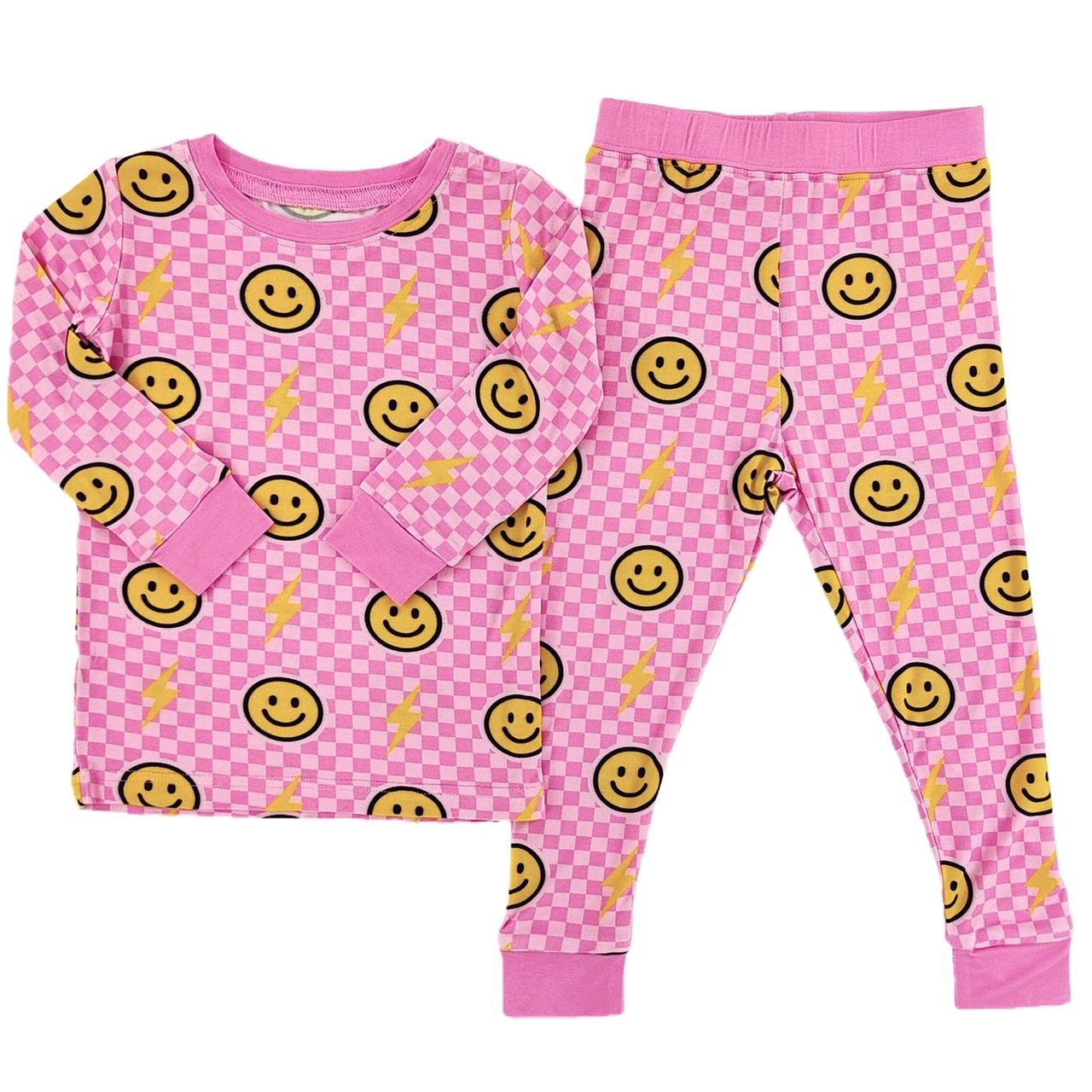 Pink Bolt Check Bamboo Set - 12-18M