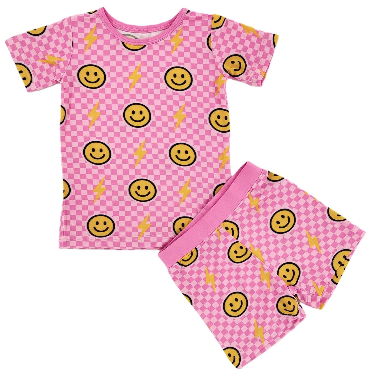Pink Bolt Check Bamboo Shorts Set - 12-18M is backordered and will ship as soon as it is back in stock.