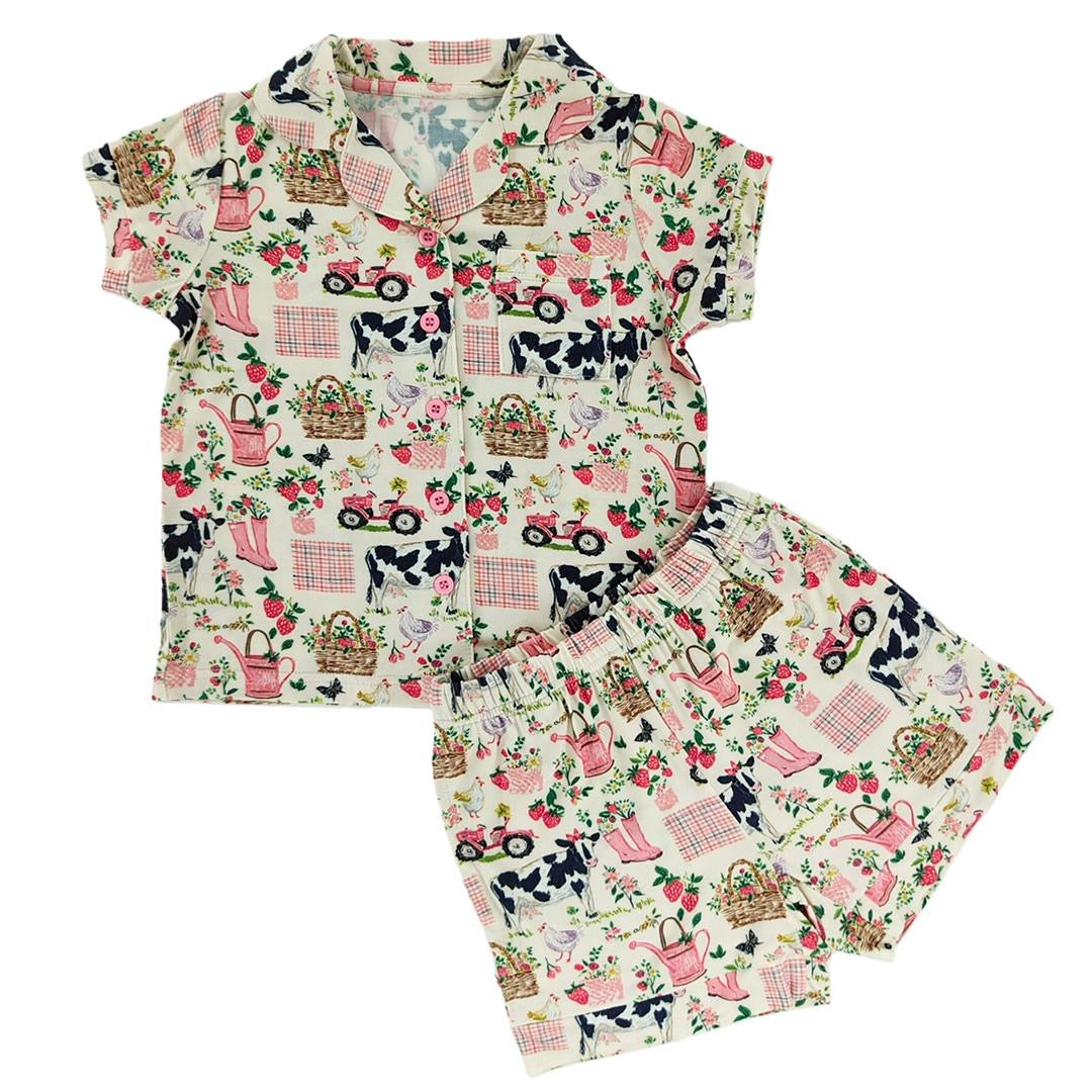Blooming Homestead Bamboo Short Button Up Set - 5T is backordered and will ship as soon as it is back in stock.