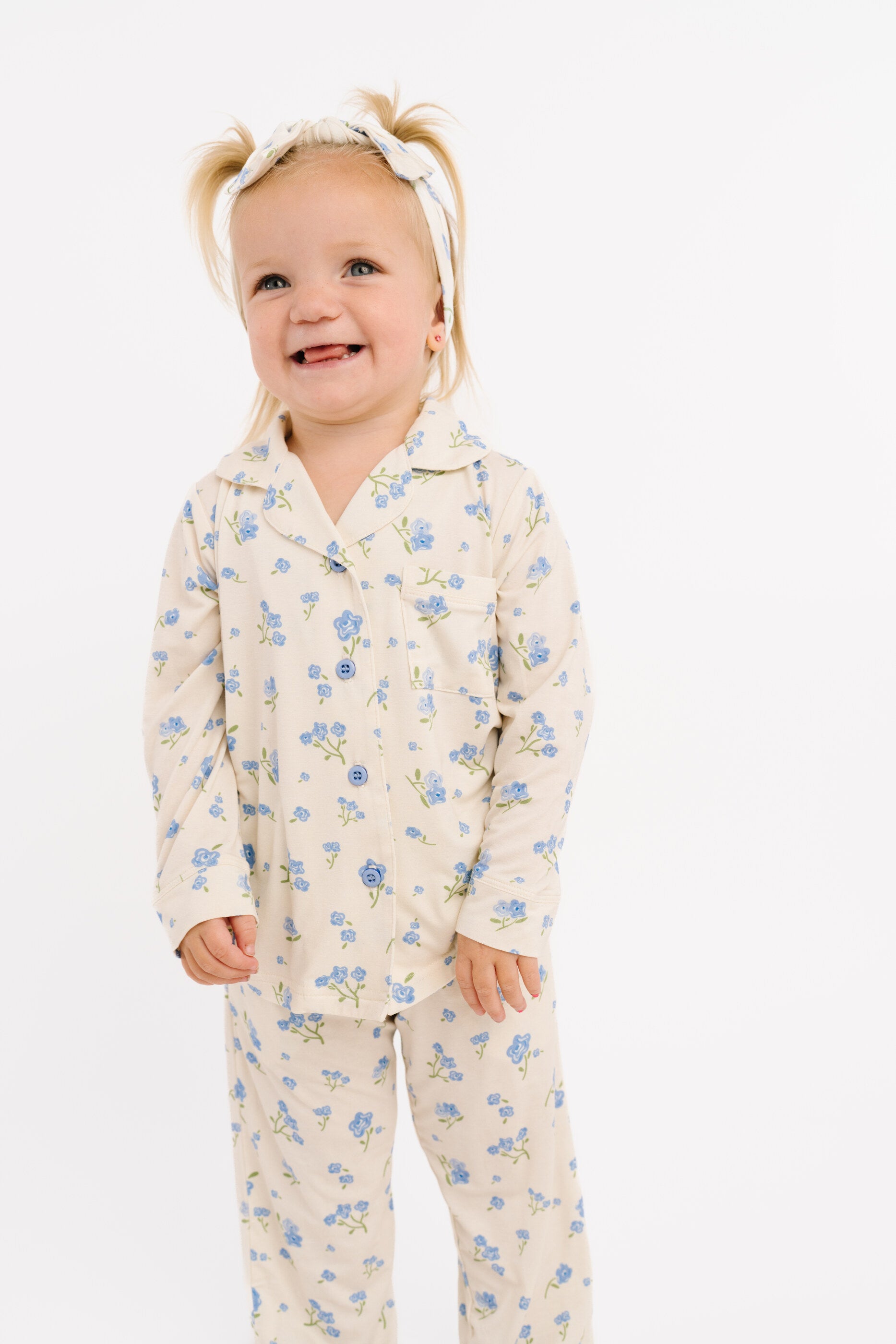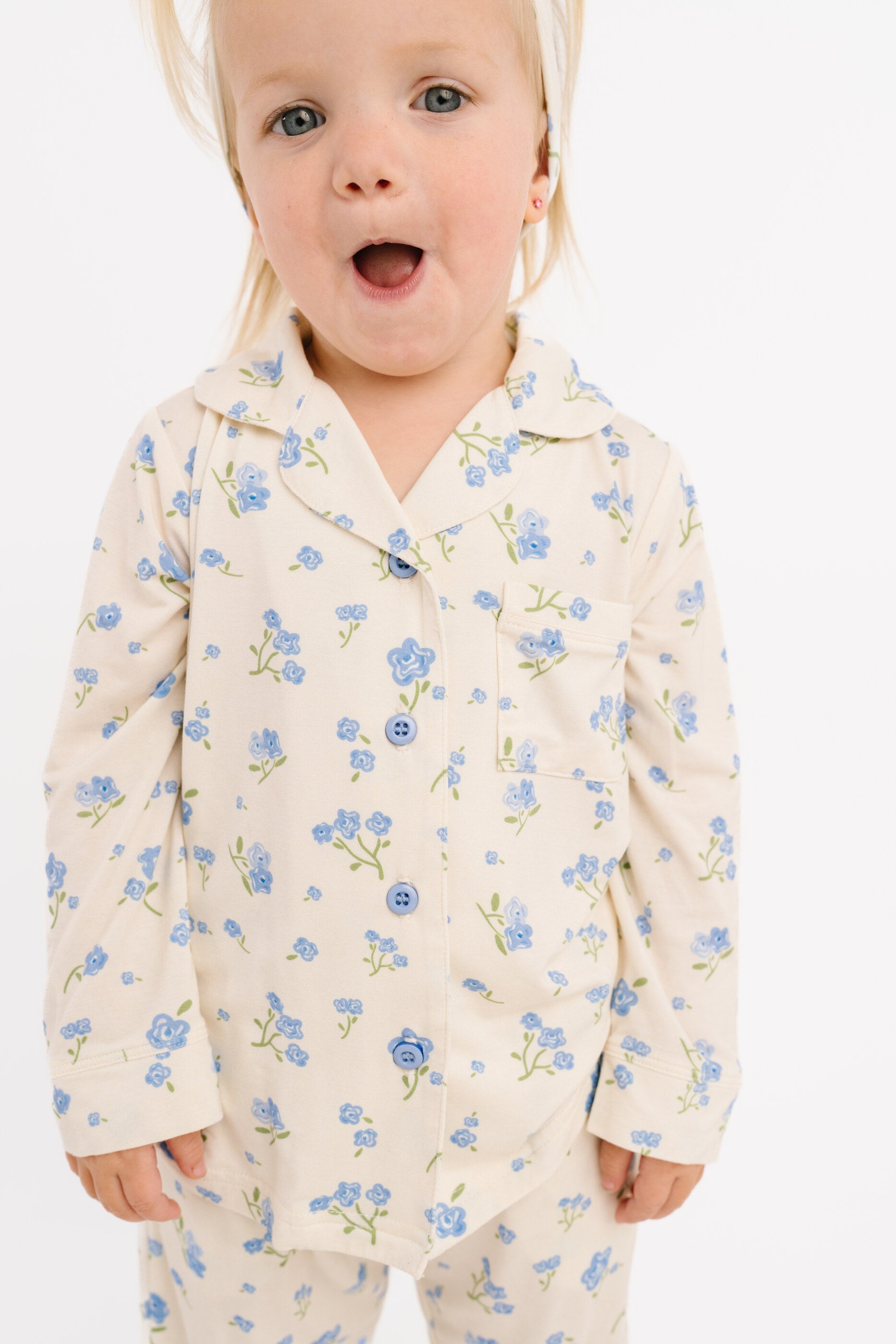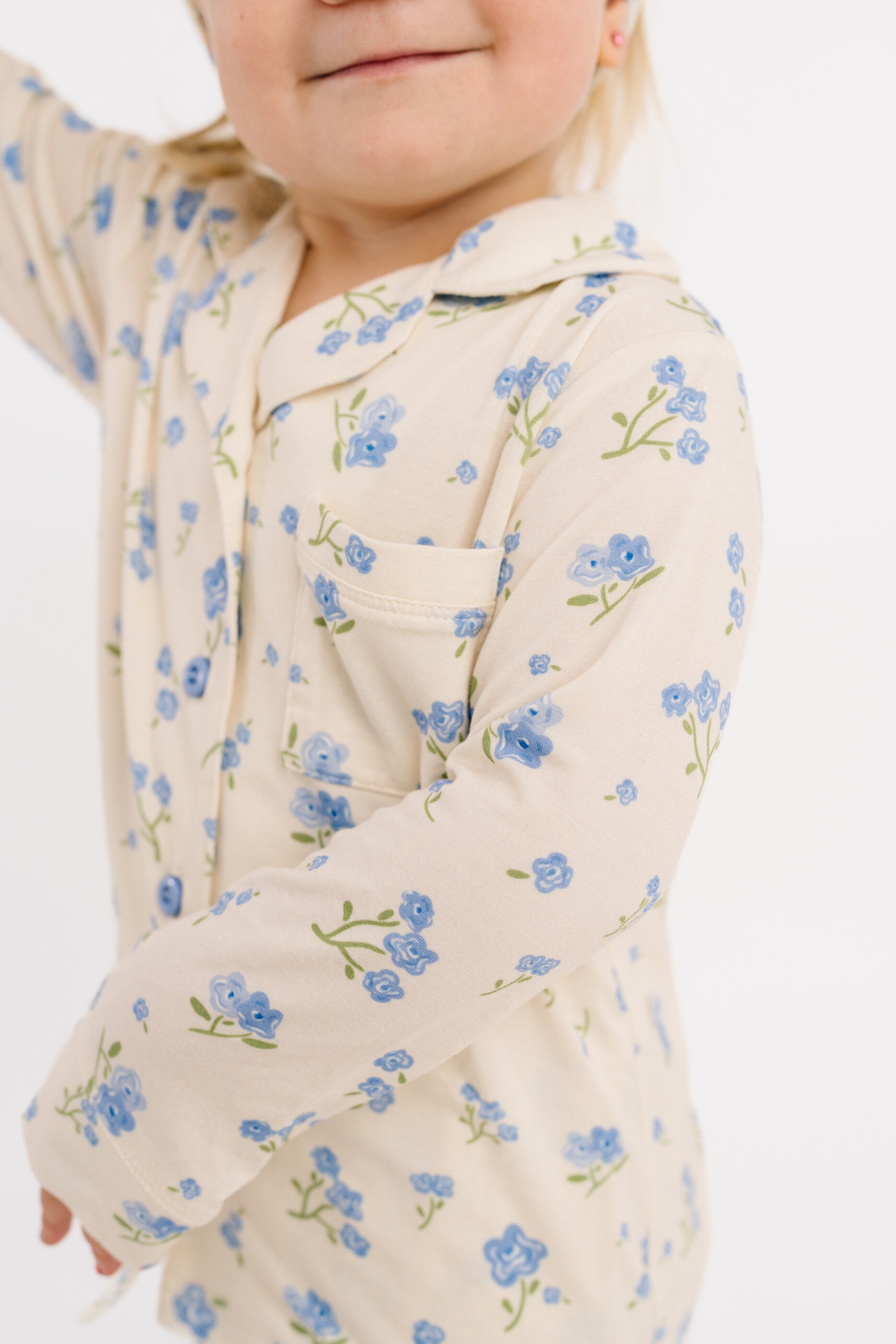Blue Blooms Bamboo Button Up Set