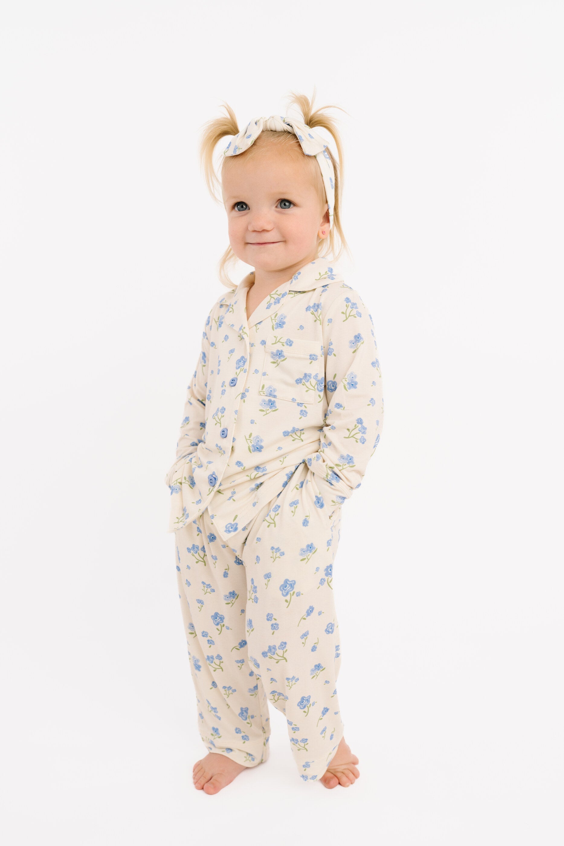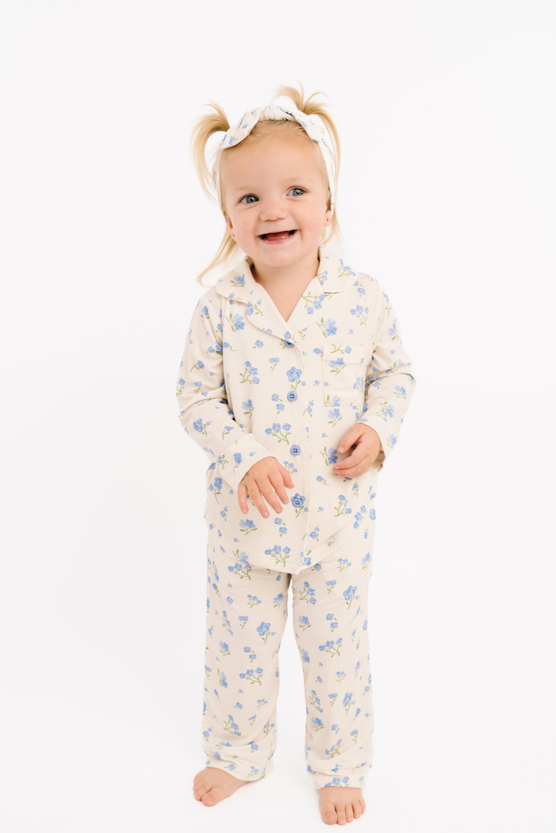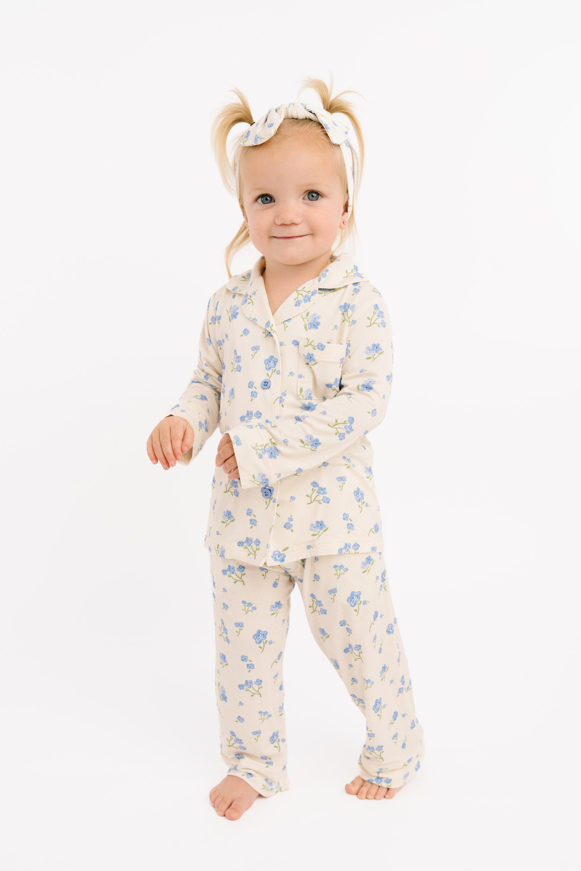 Blue Blooms Bamboo Button Up Set