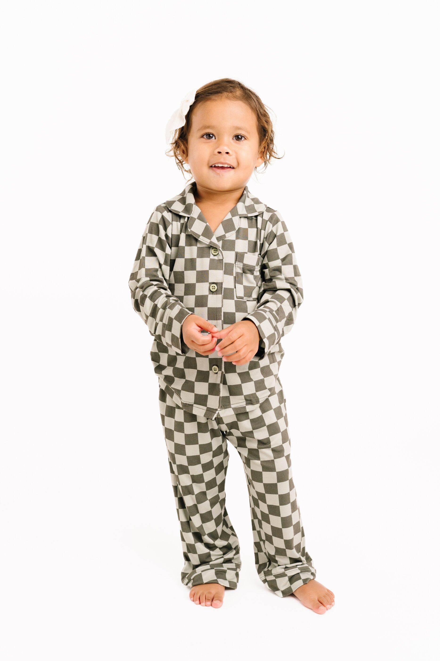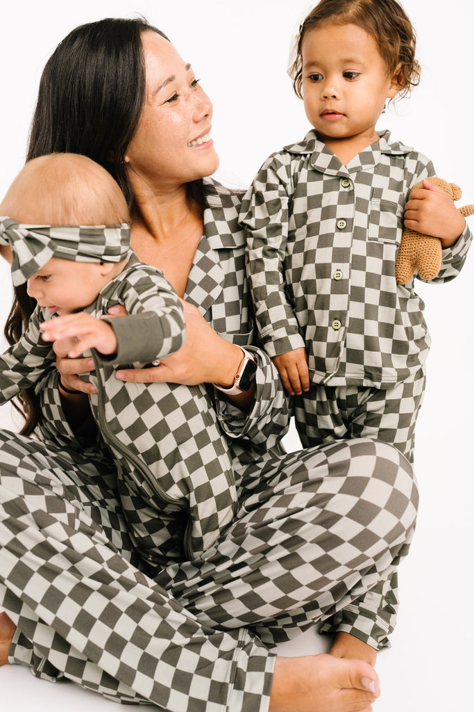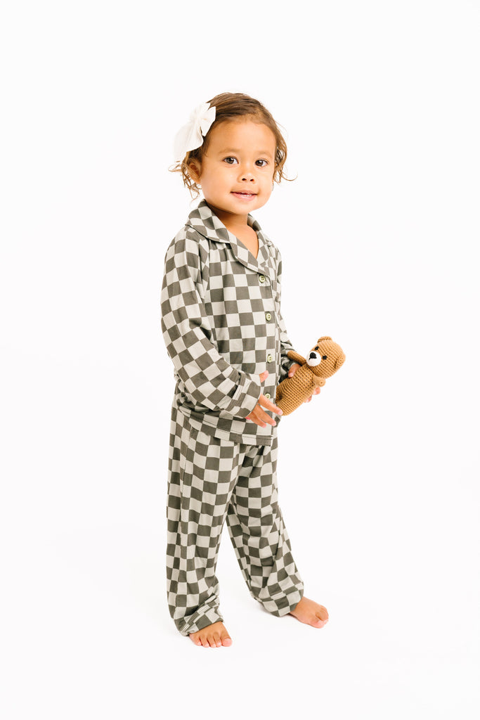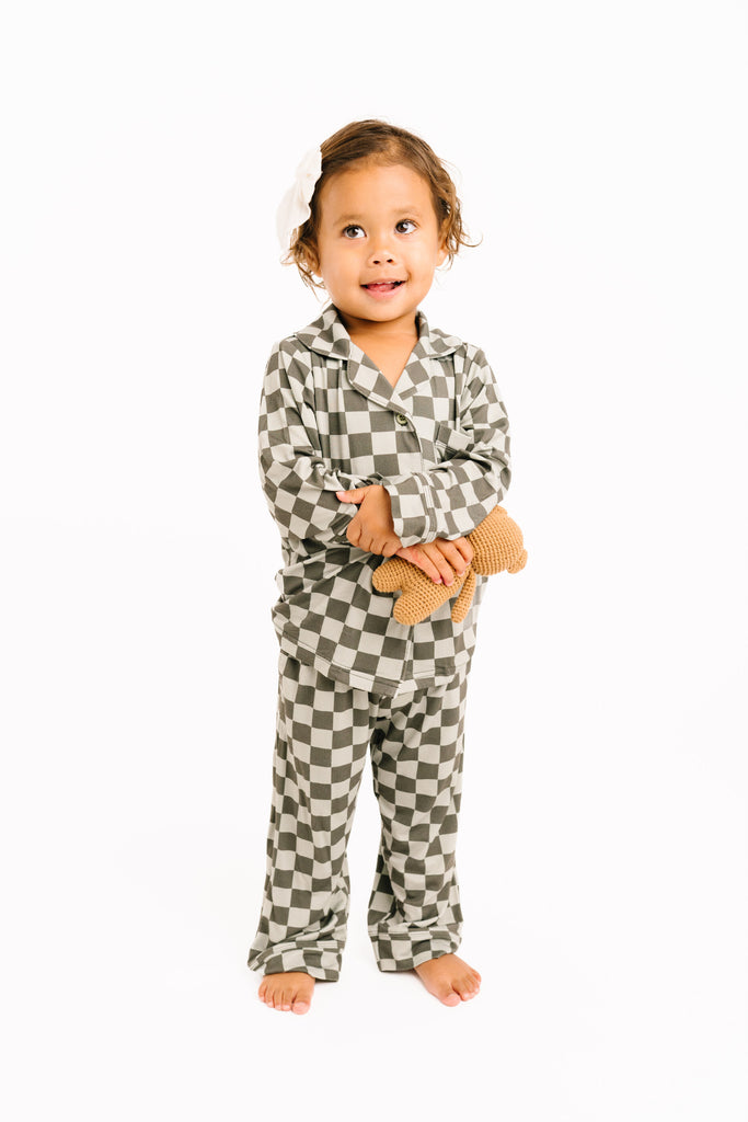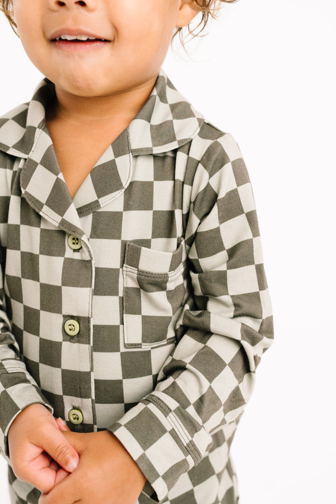 Pine Checkered Kid Long Sleeve Bamboo Button Up Set - 2T is backordered and will ship as soon as it is back in stock.