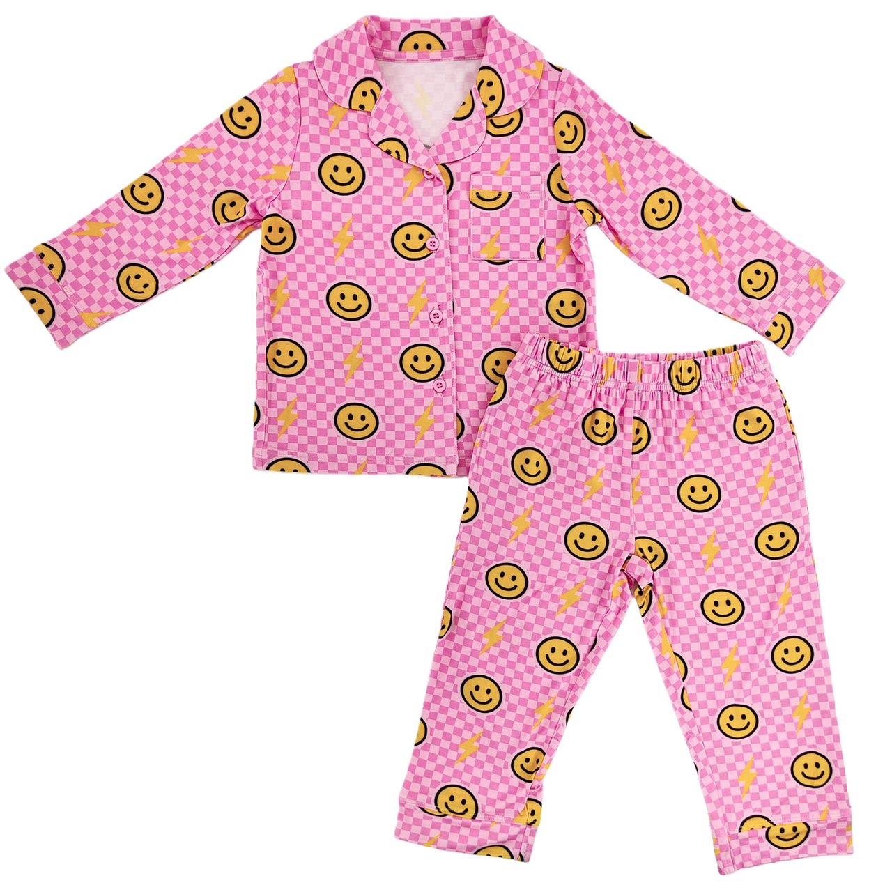Pink Bolt Check Bamboo Button Up Set - 4T is backordered and will ship as soon as it is back in stock.