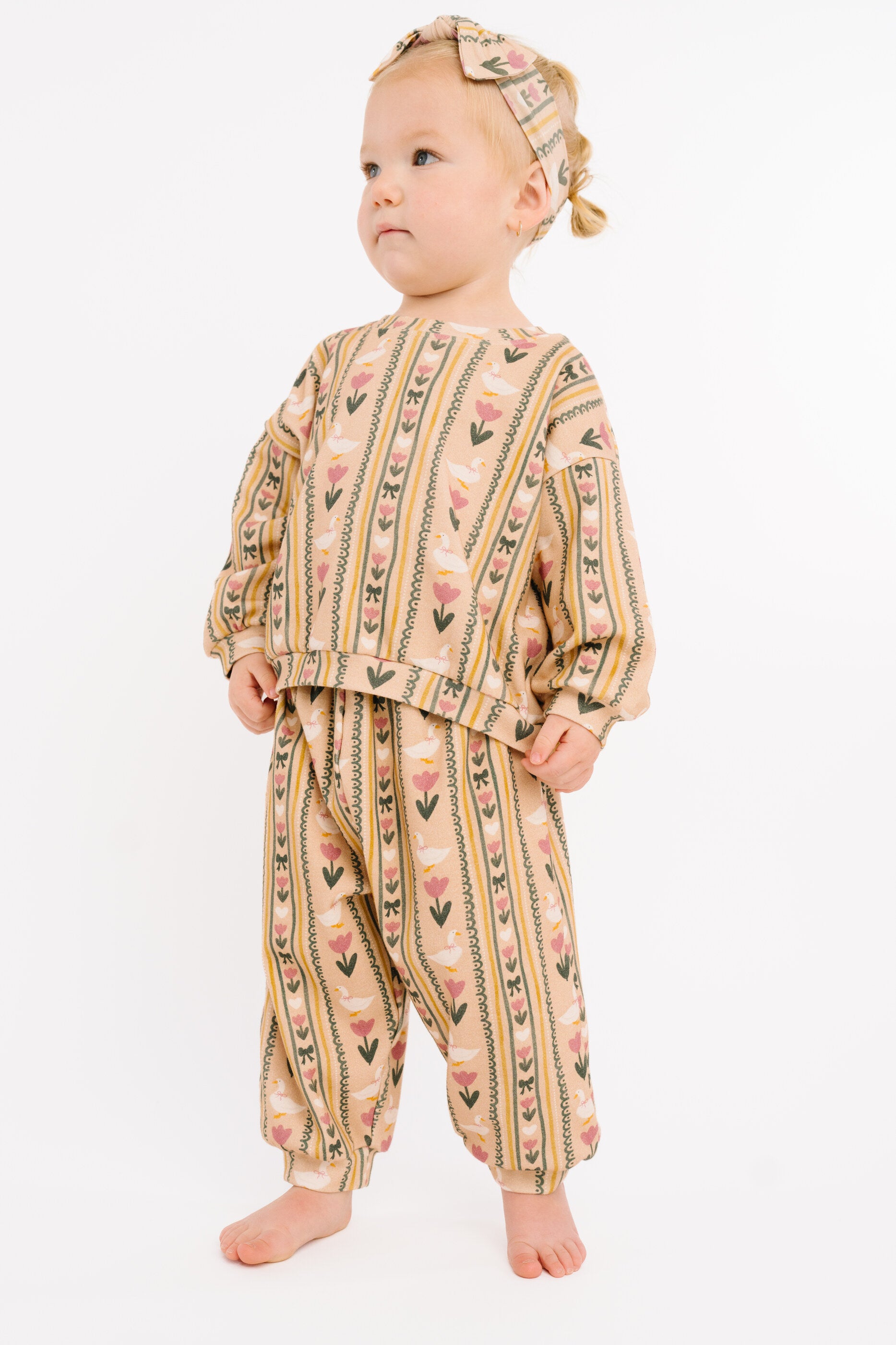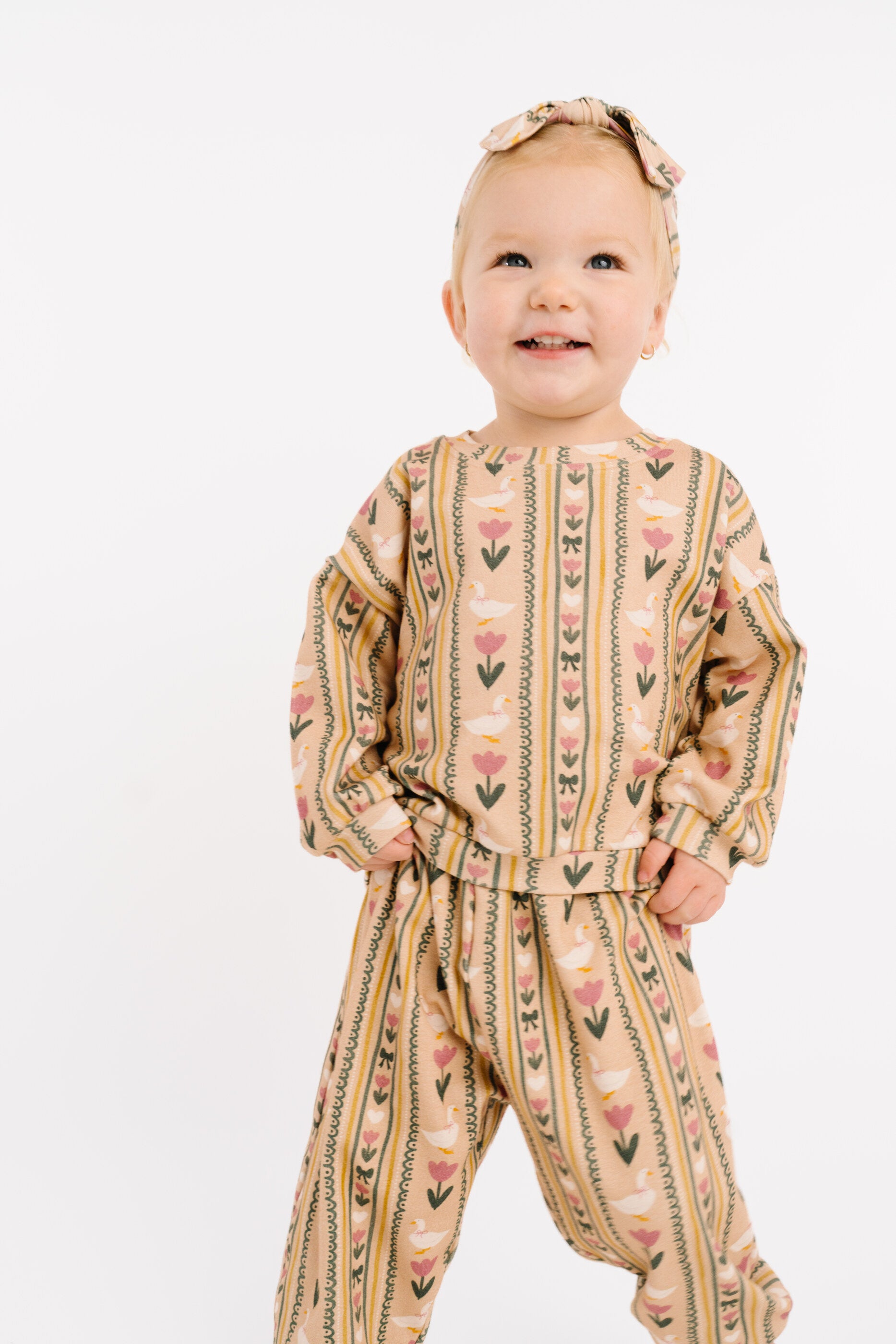 Spring Goose Sweatsuit - 4T is backordered and will ship as soon as it is back in stock.